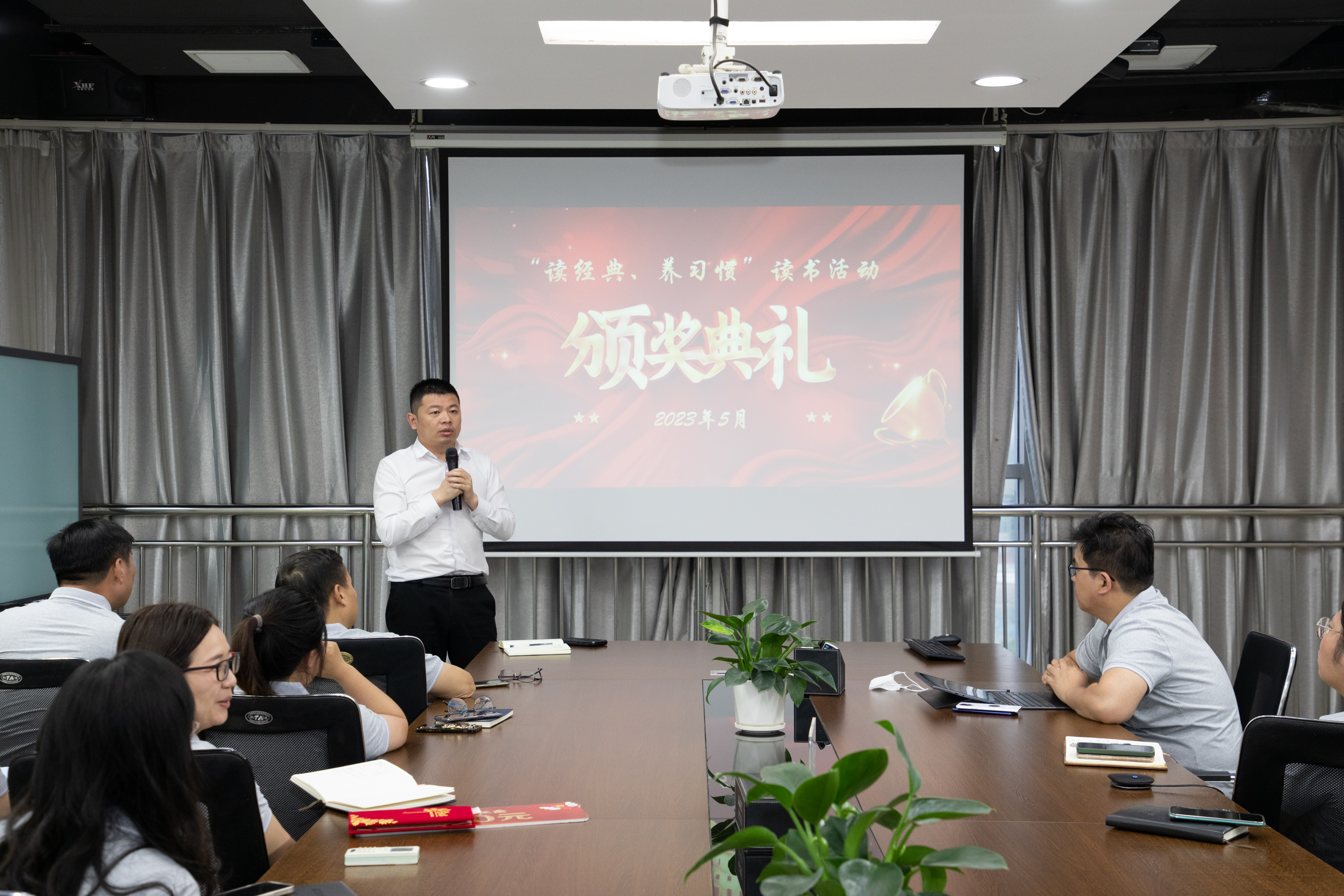 2023年5月24日晚,在熊猫体育总部9楼会议室,公司举行了“读经典、养习惯”读书活动颁奖会议,为期一个月的读书活动落下帷幕,各部门踊跃进行读书心得的分享,经过评选,选出十四位优秀奖获得者、六位优等奖获得者,优秀奖获得者有李文玲、赵婷婷、姜婉兰、张朋涛、崔燕燕、赵豪杰、郑雪红、王景行、王中立、李帆帆、马浩然、李夏笛、杨晓莹、文纪永;优等奖获得者有三等奖陈宁君、付铭、高新新,二等奖苑仁东、来亚南,一等奖崔璨。       优秀获奖代表在颁奖活动上纷纷给大家分享了自己的心得体会,结合自身工作岗位依次阐述了自己在工作生活中从《高效能人士的七个习惯》中学习到的技能,对自己工作方式方法的反思以及未来工作改善措施的规划。